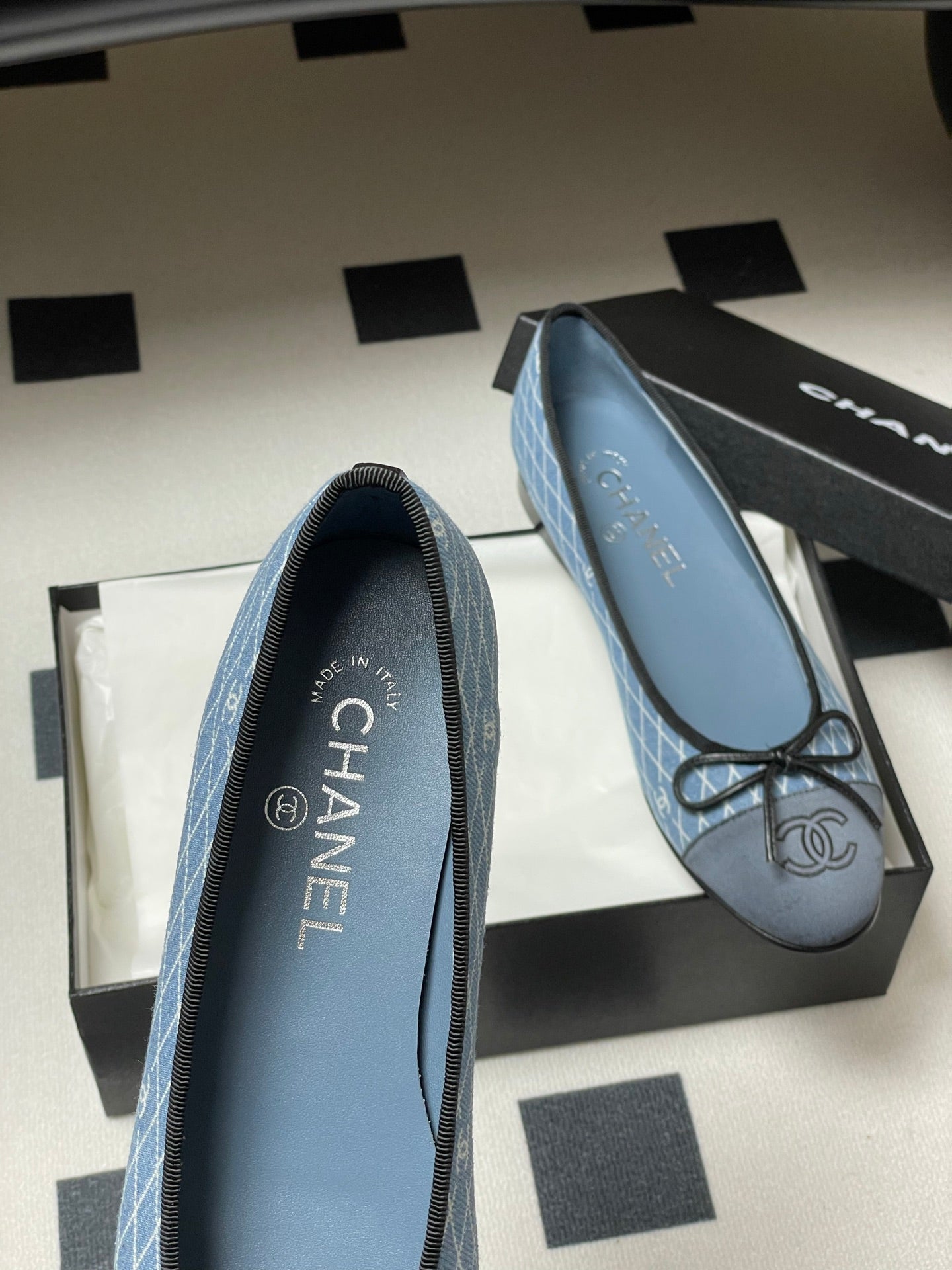 CC 25P Light Blue Black Quilted Denim
