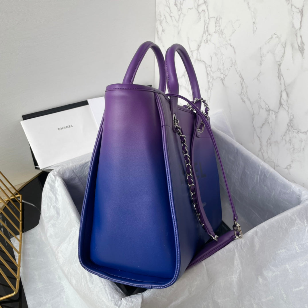 cc shopping bag 34cm purple blue calfskin silver hardware