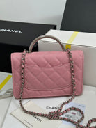 CC 25P Wallet Woc Handle 19cm Pink Pastel Leather Silver Hardware 243448