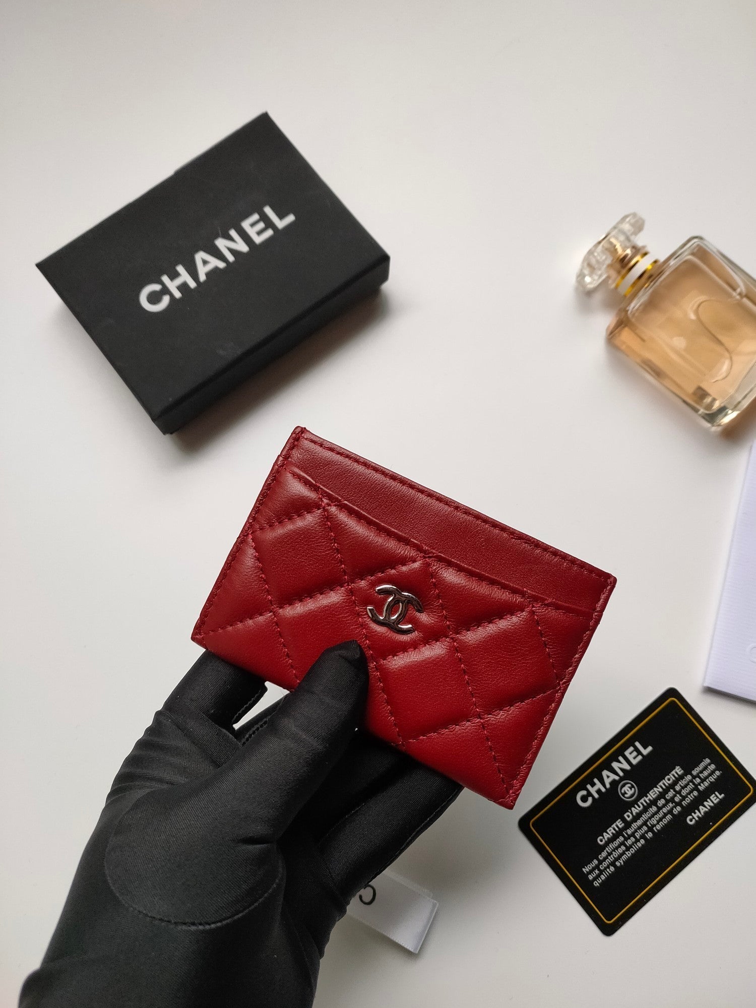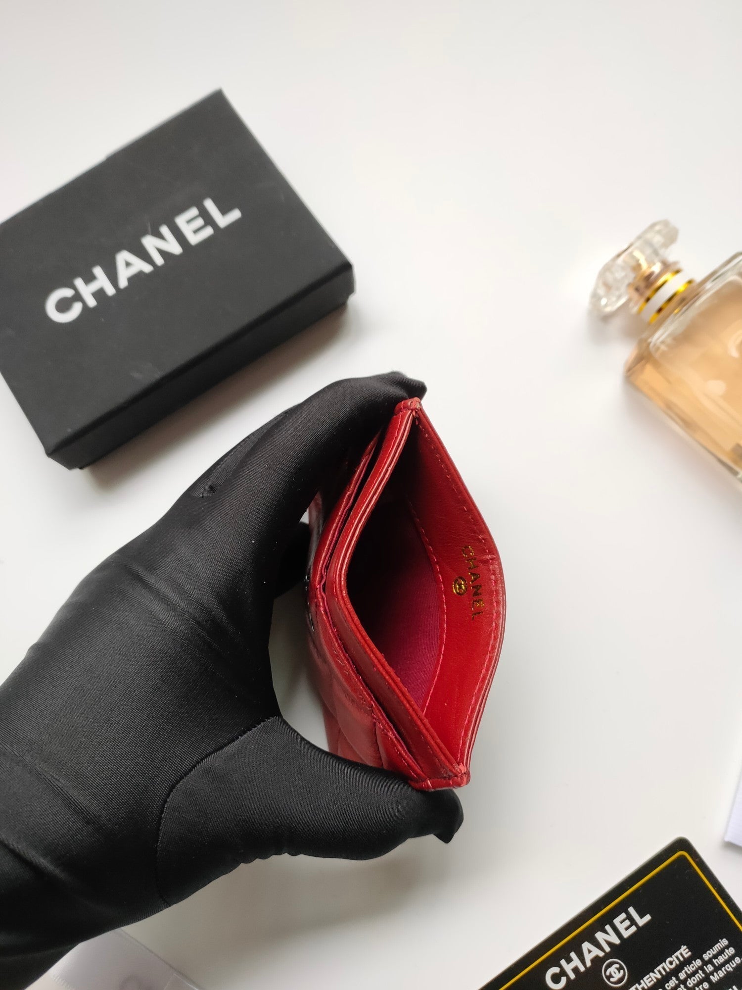 CC CARD HOLDER 11.2 CRIMSON CALFSKIN GOLD ICON