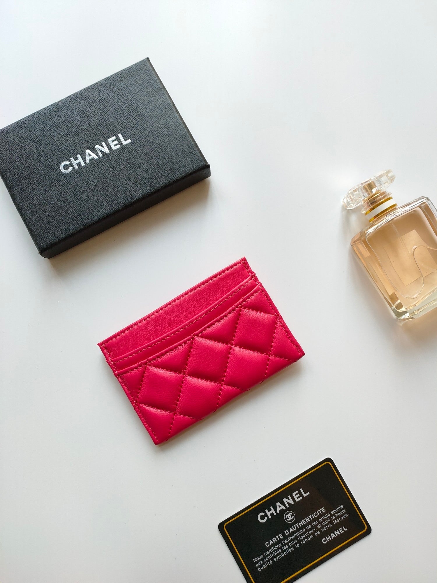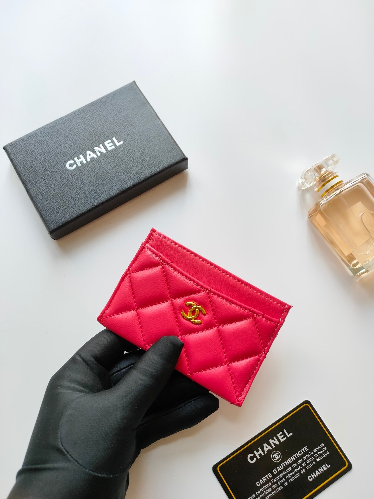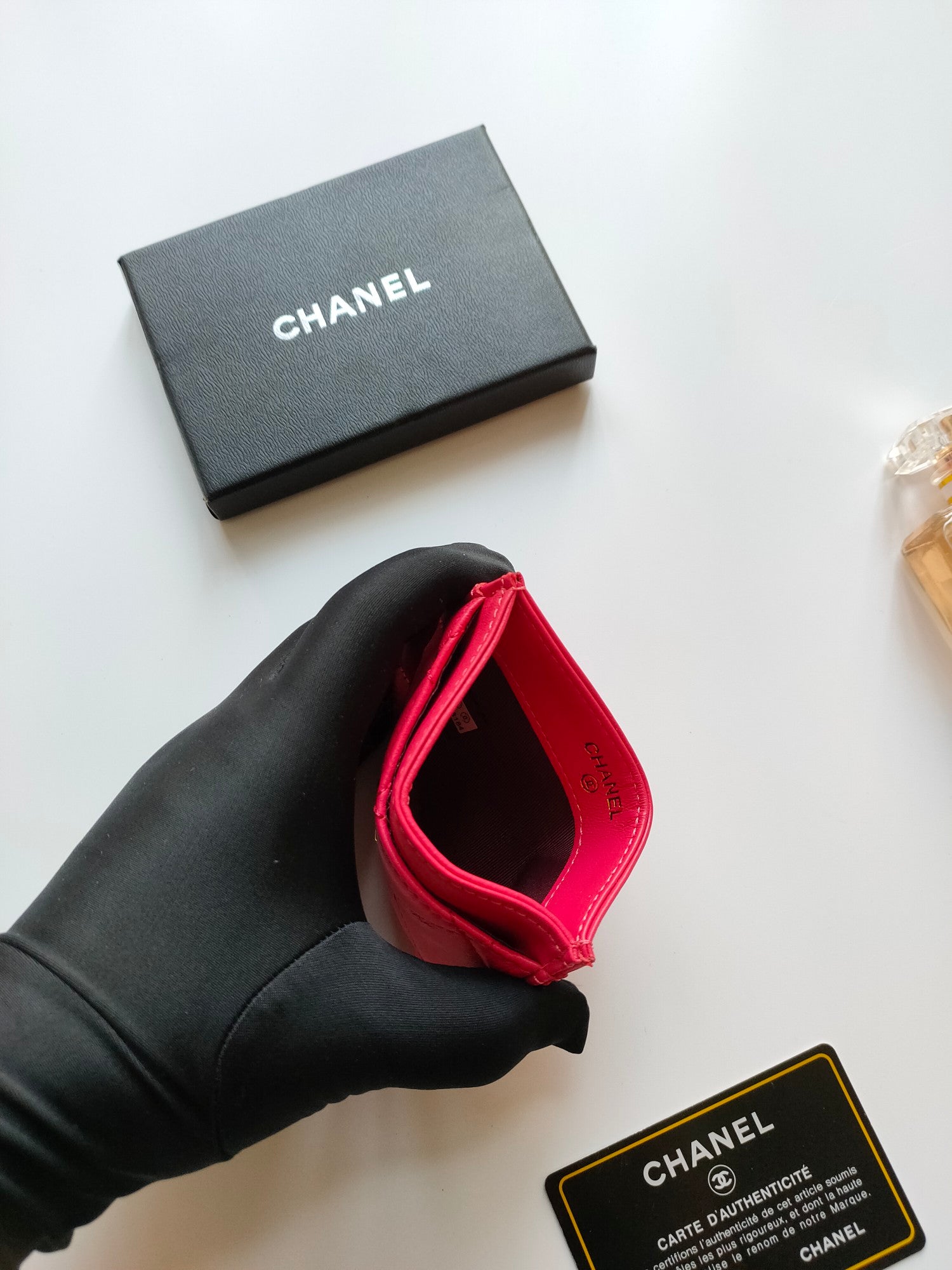CC CARD HOLDER 11.2 RED PINK CALFSKIN GOLD ICON
