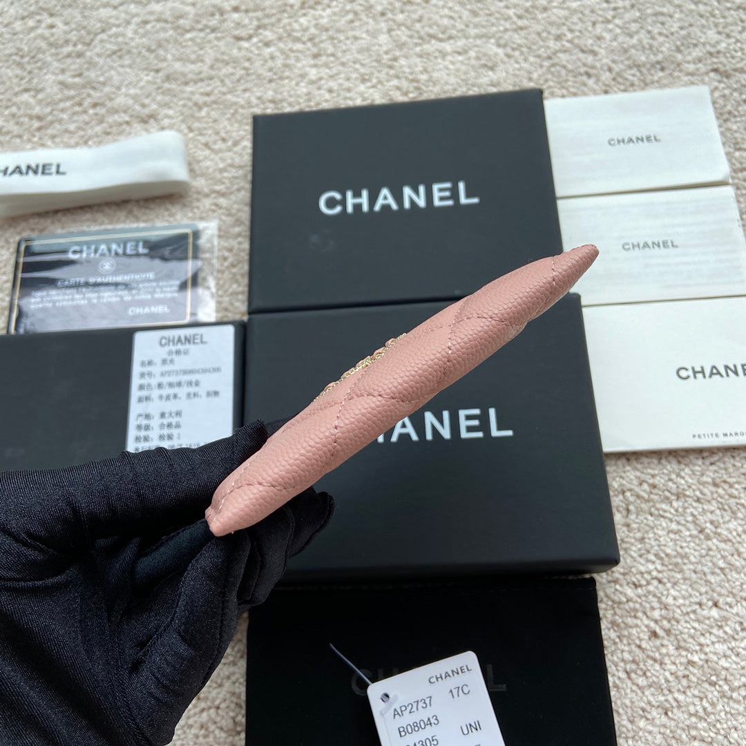 cc card holder 11cm pink caviar light gold hardware