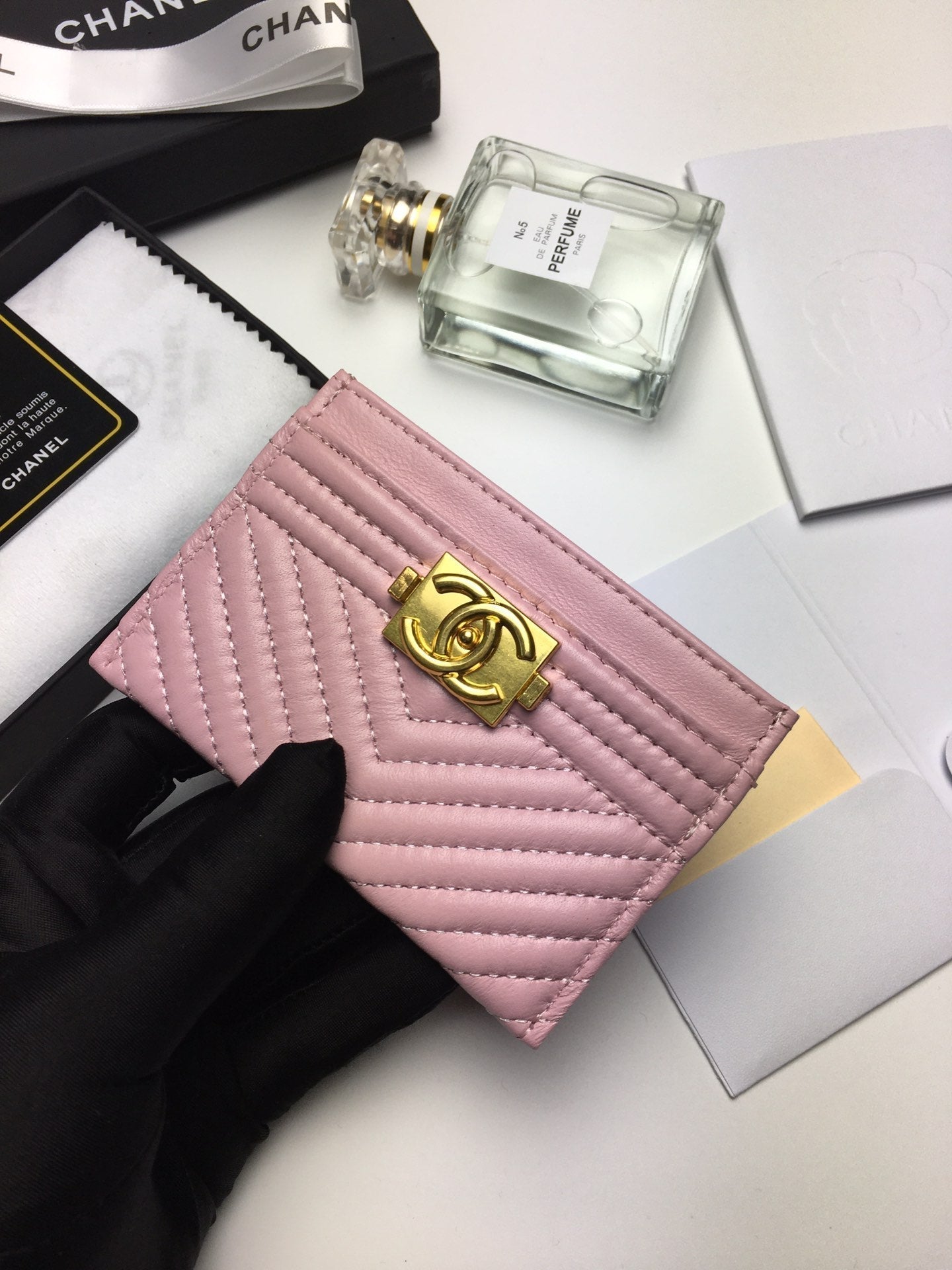 CC LINE CARD HOLDER 11.2 BABY PINK CALFSKIN GOLD ICON