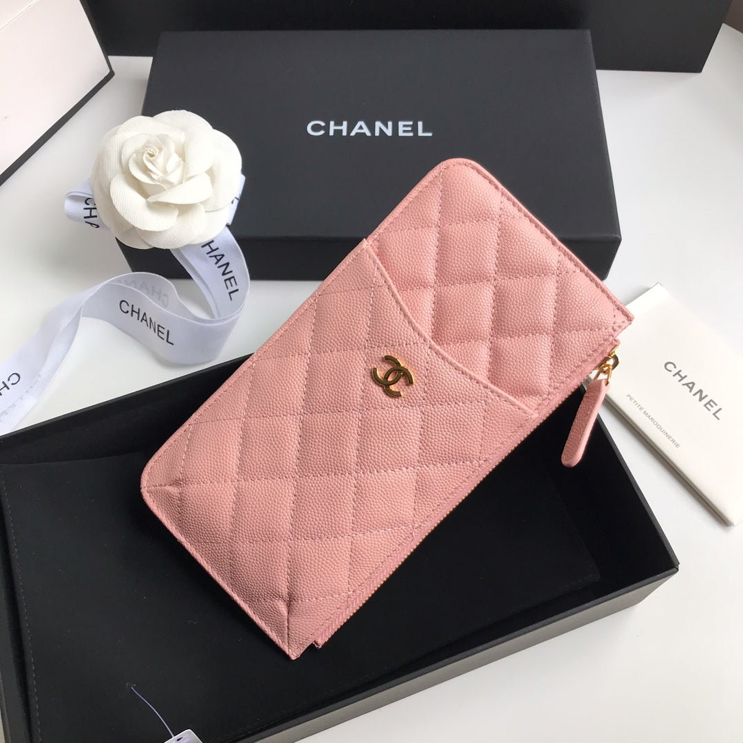 CC MOBILE PURSE 19.5 PEACH GRAINED CALFSKIN GOLD ICON