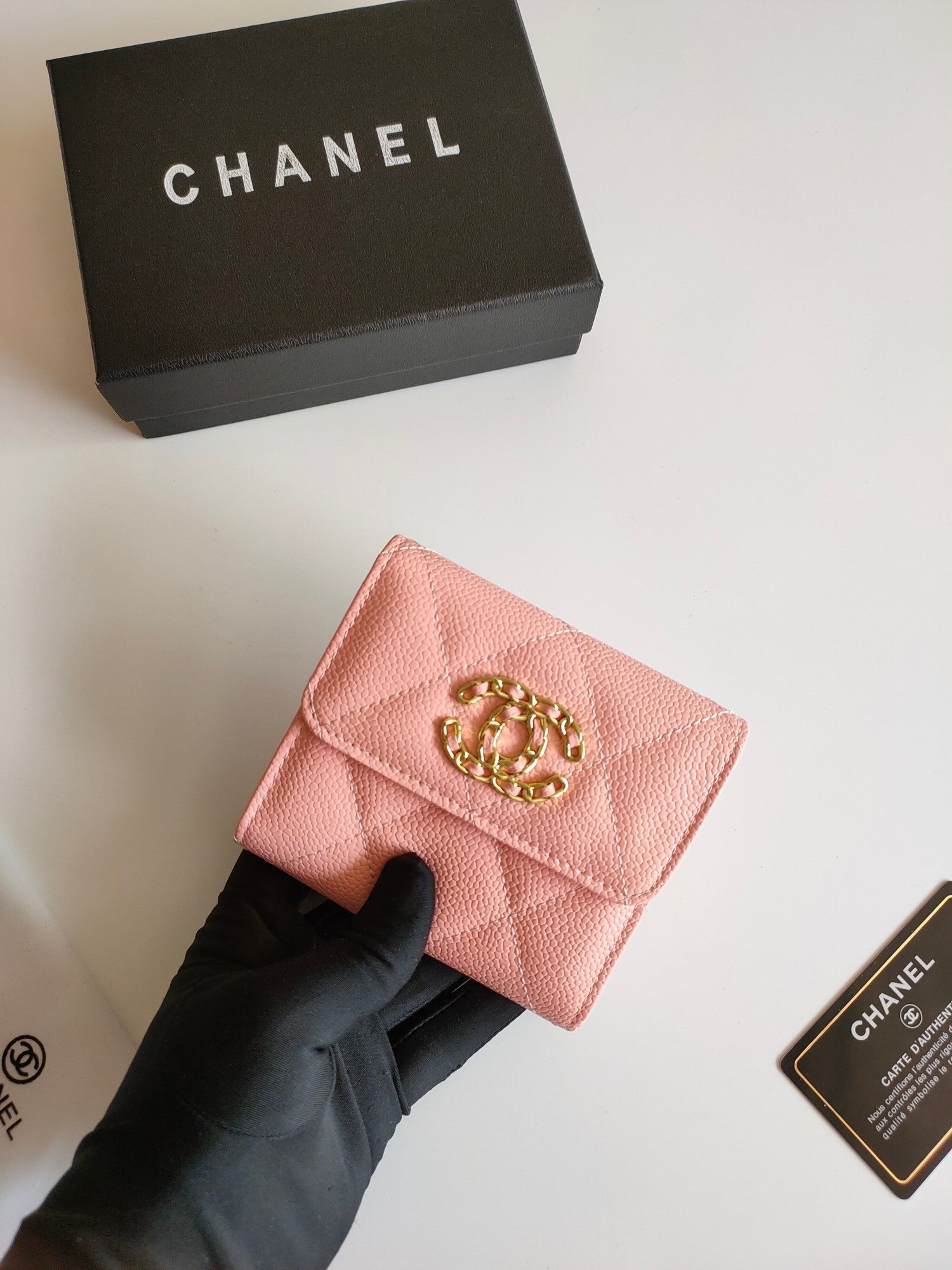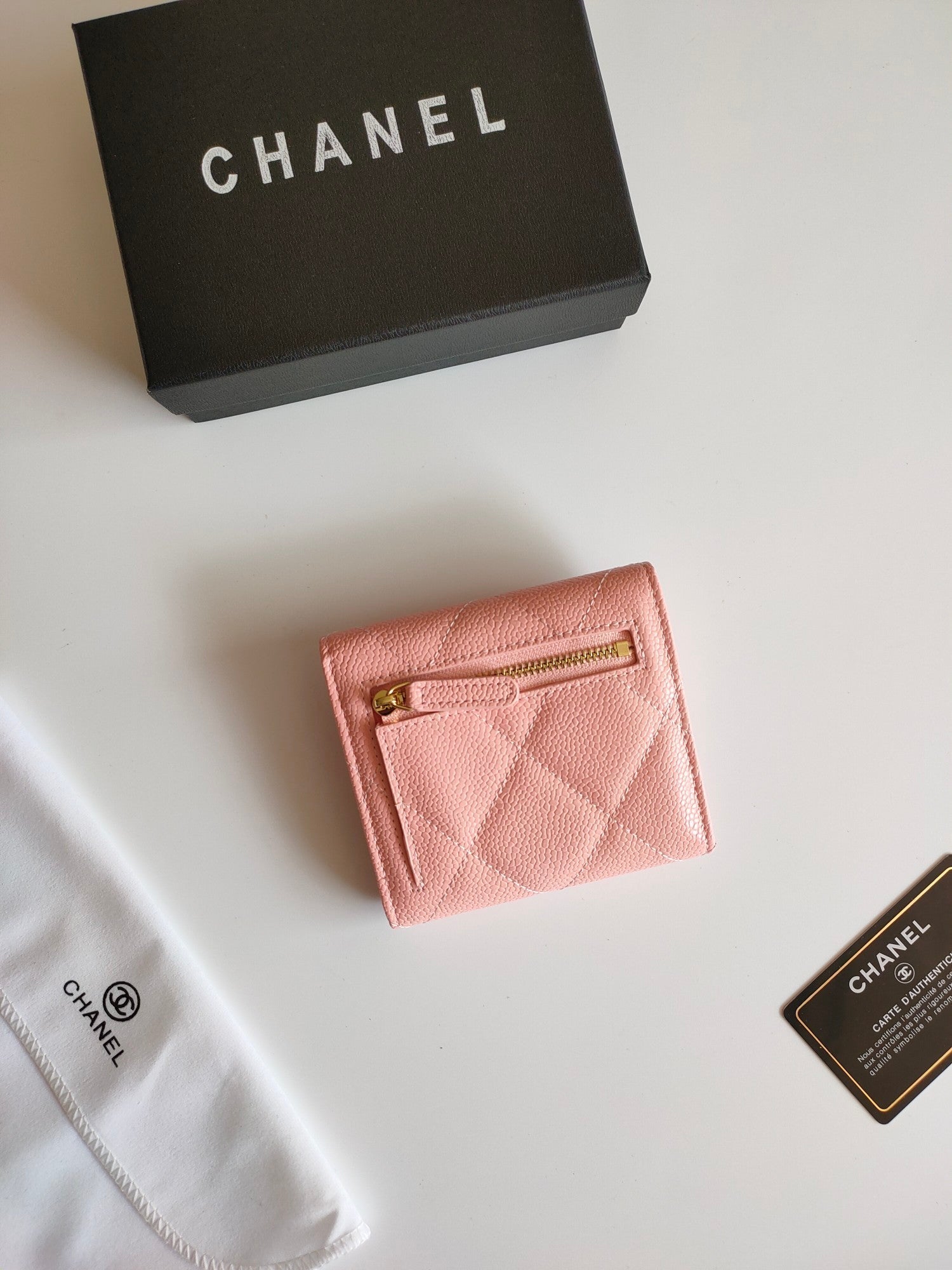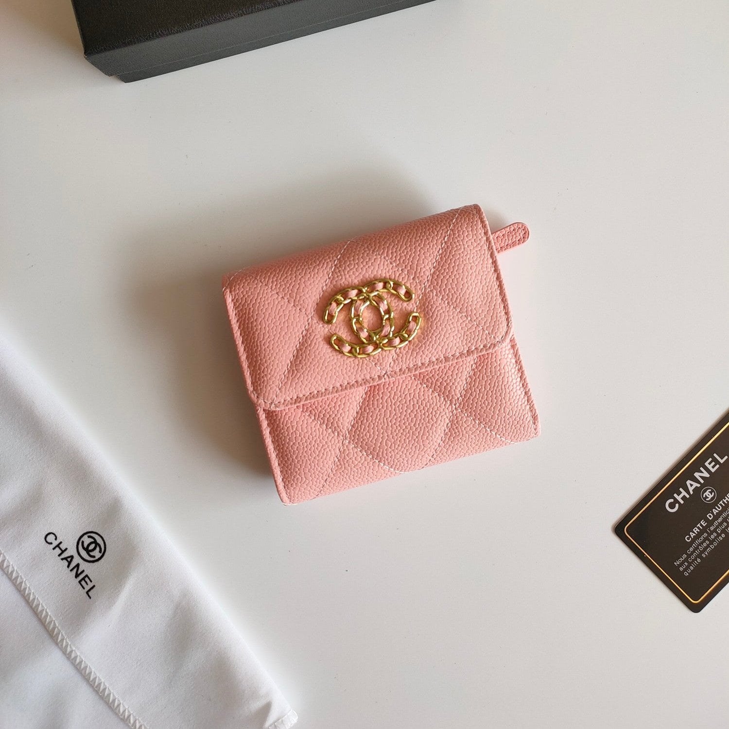 CC SQUARE PURSE 12 PEACH GRAINED CALFSKIN GOLD ICON