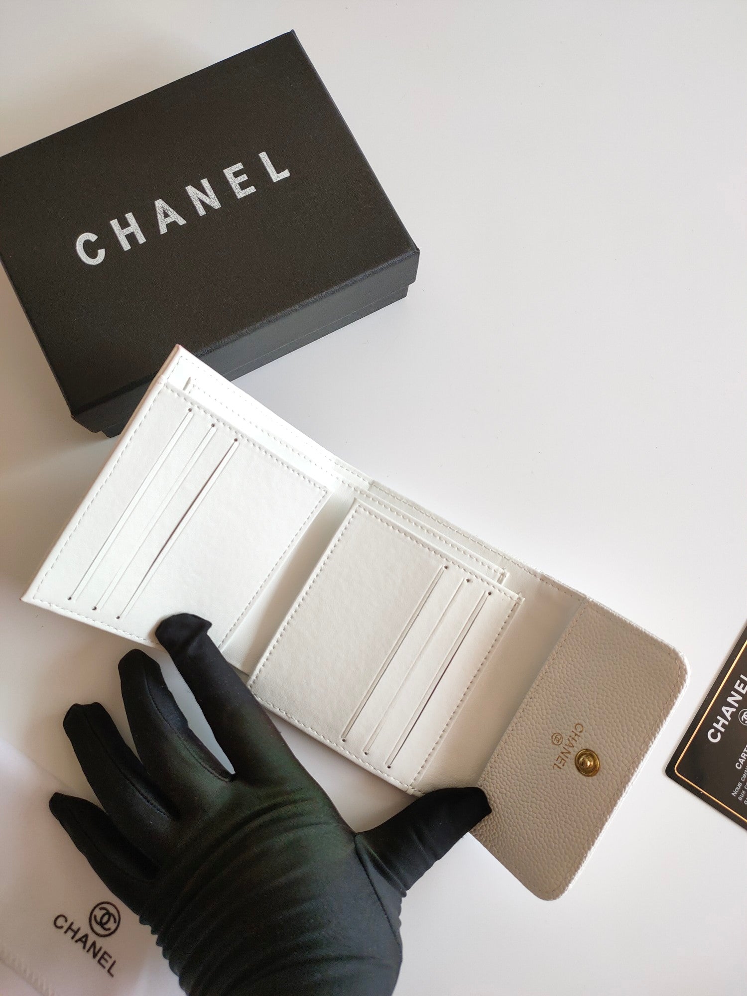 CC SQUARE PURSE 12 WHITE GRAINED CALFSKIN GOLD ICON