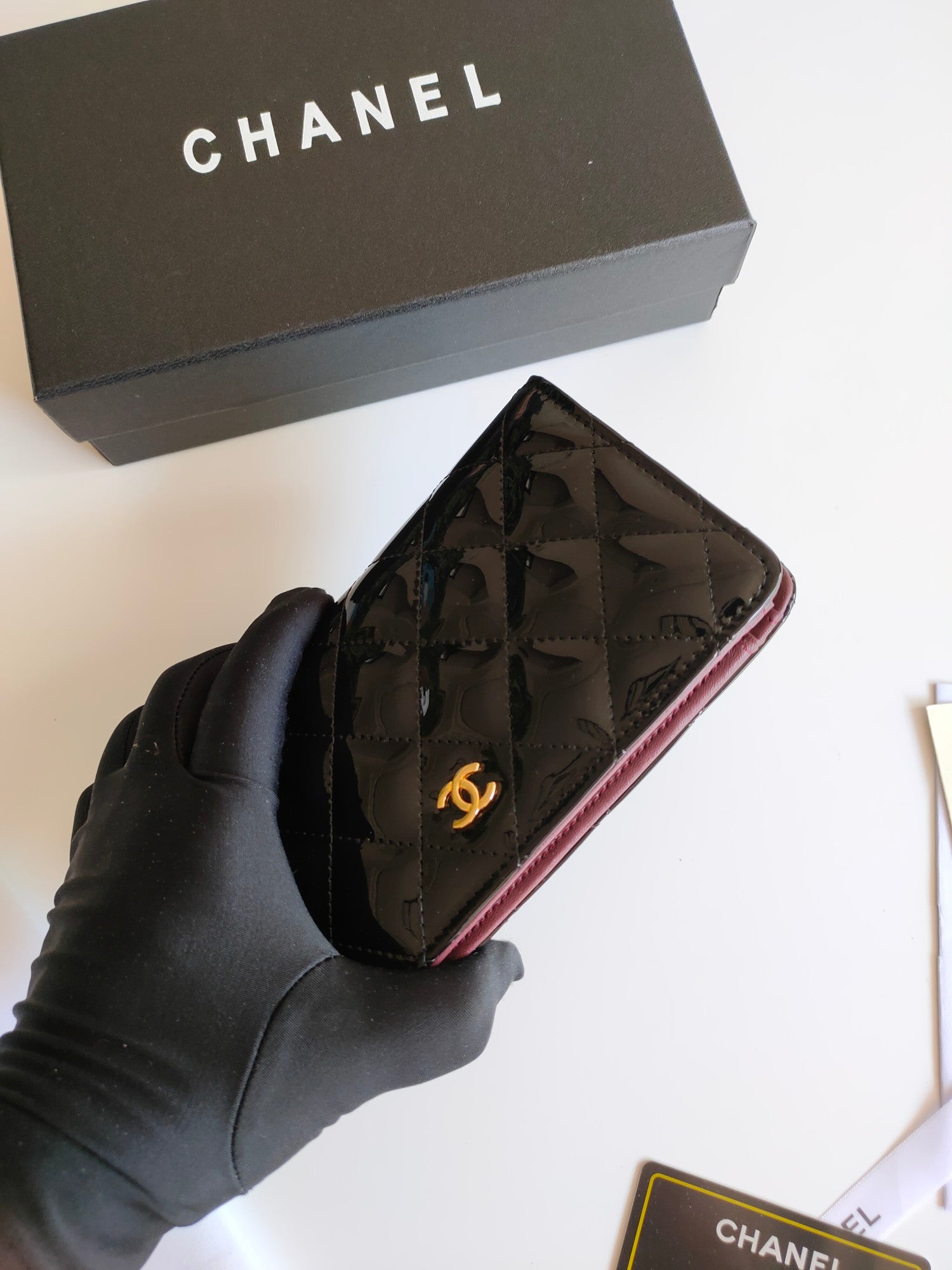 CC ZIPPED LONG PURSE 19 BLACK POLISHED CALFSKIN GOLD ICON