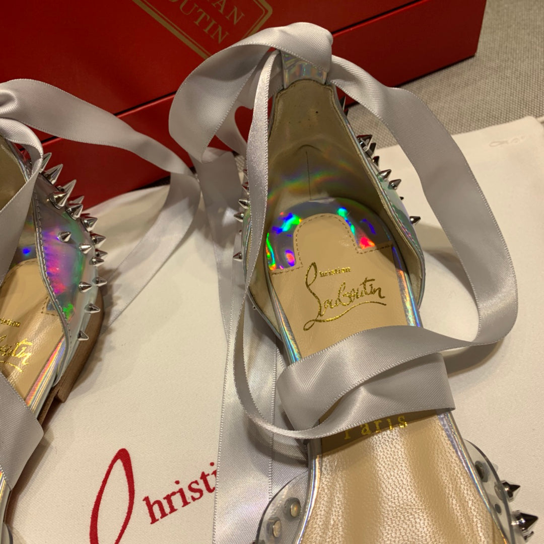 CL Degrastrass Flats Silver PVC and Strass Silver