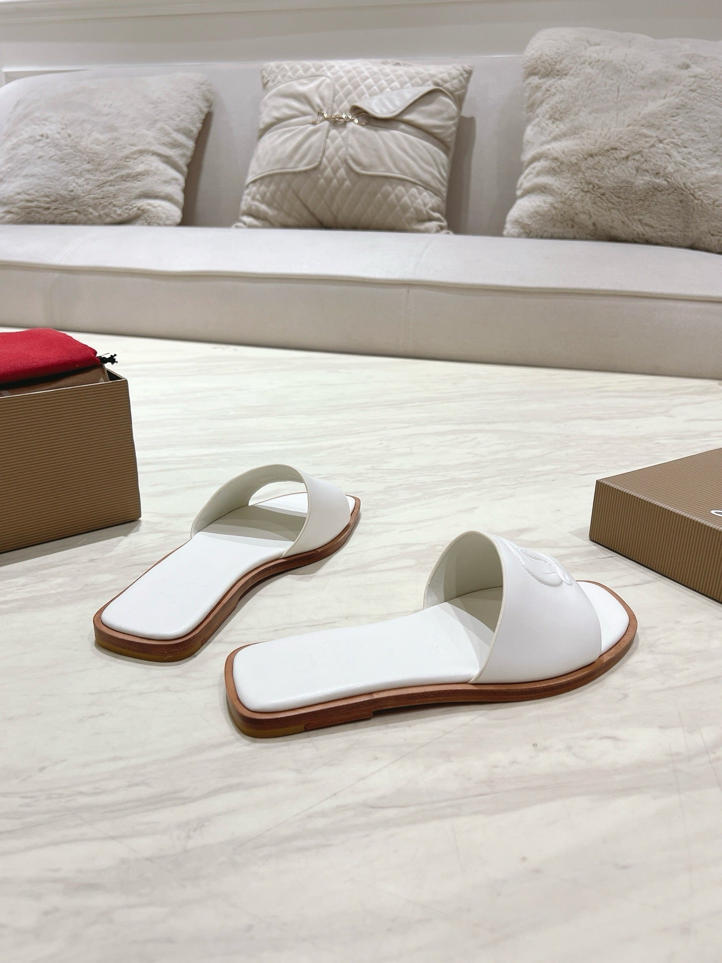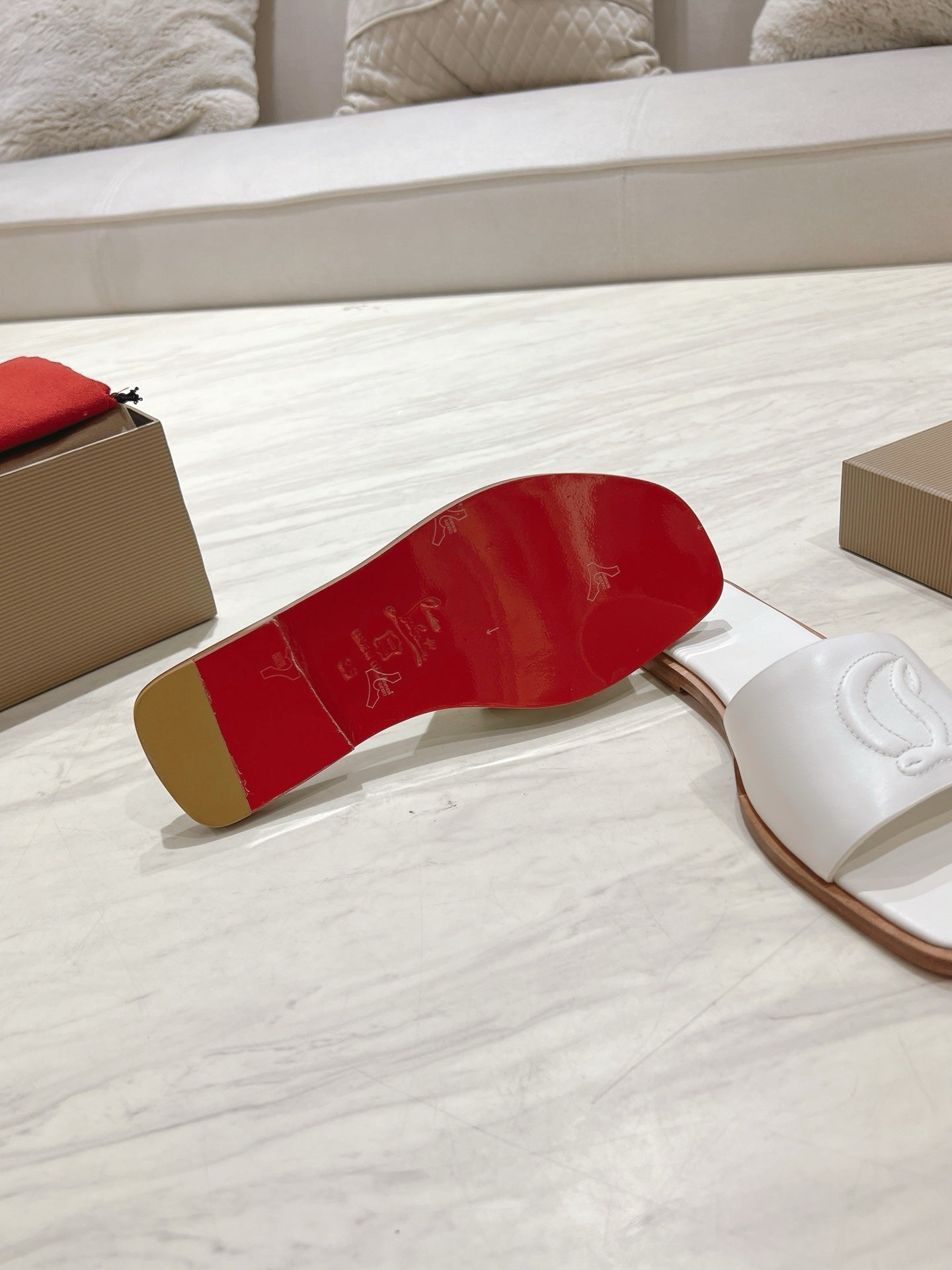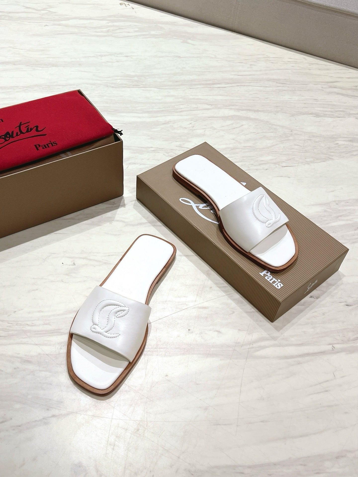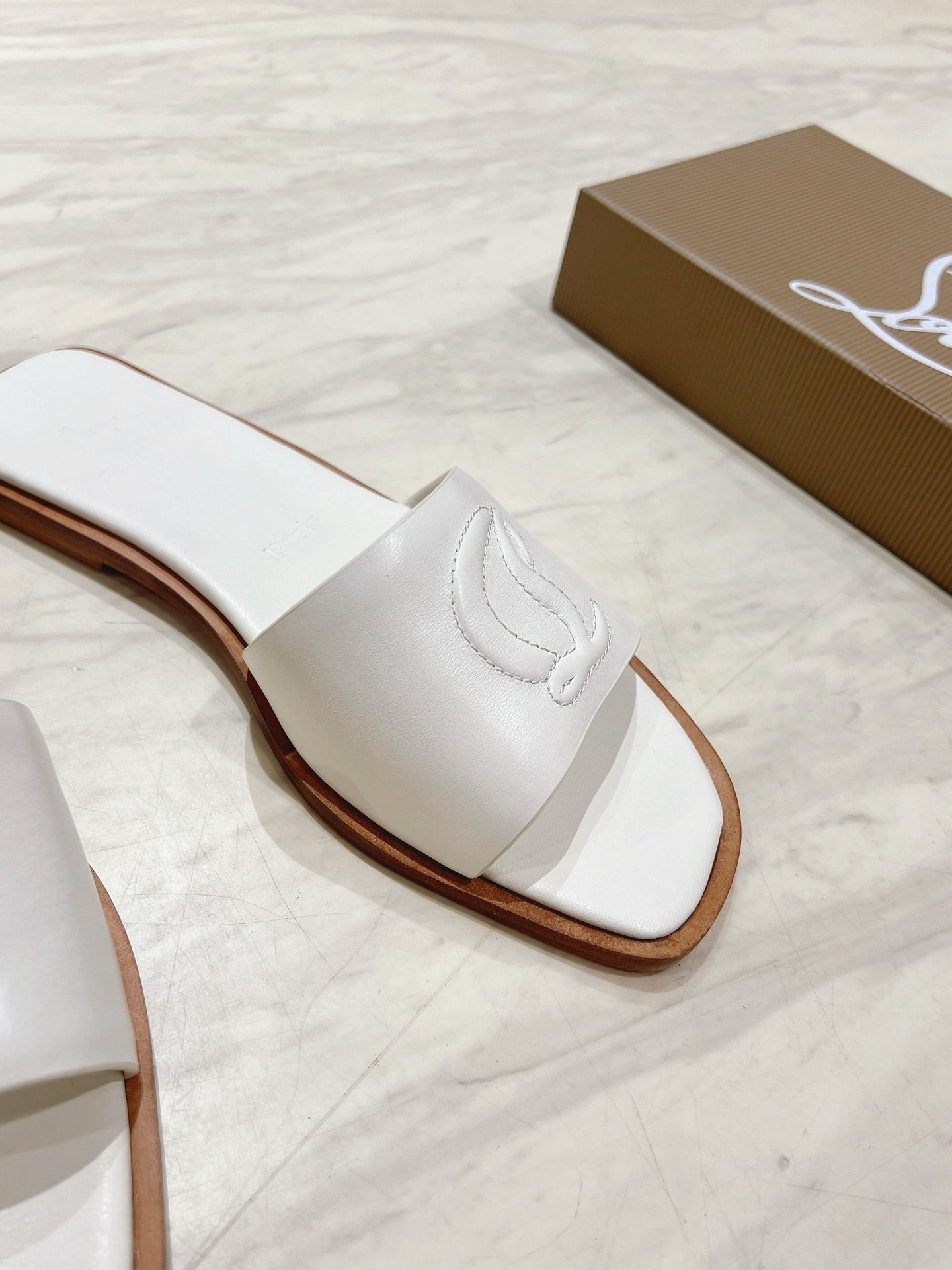 CL 25 Slippers White Top Layer High Gloss Calfskin 307497