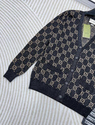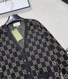 GG V-Neck Long Sleeve Cardigan Black Beige Monogram
