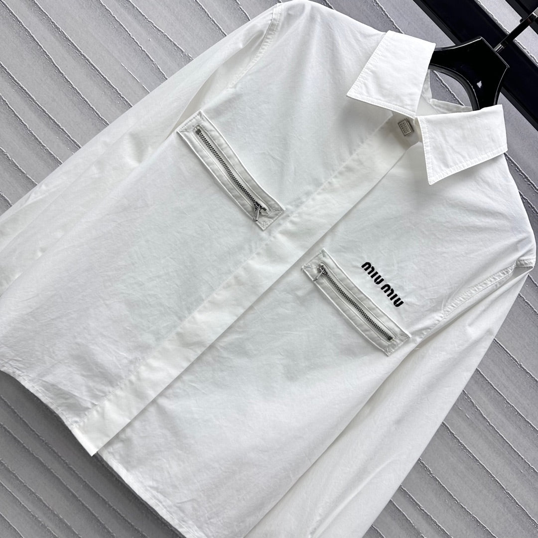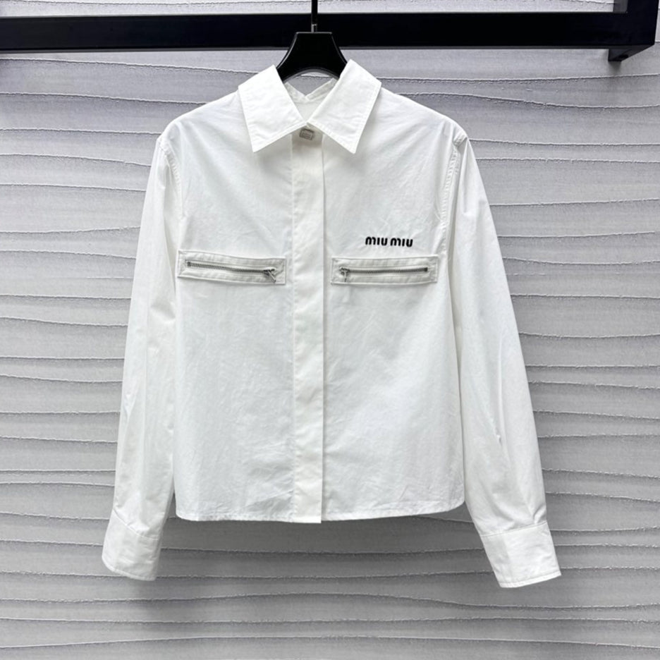 Miu Layered-Effect Cotton Polo Blue Shirt