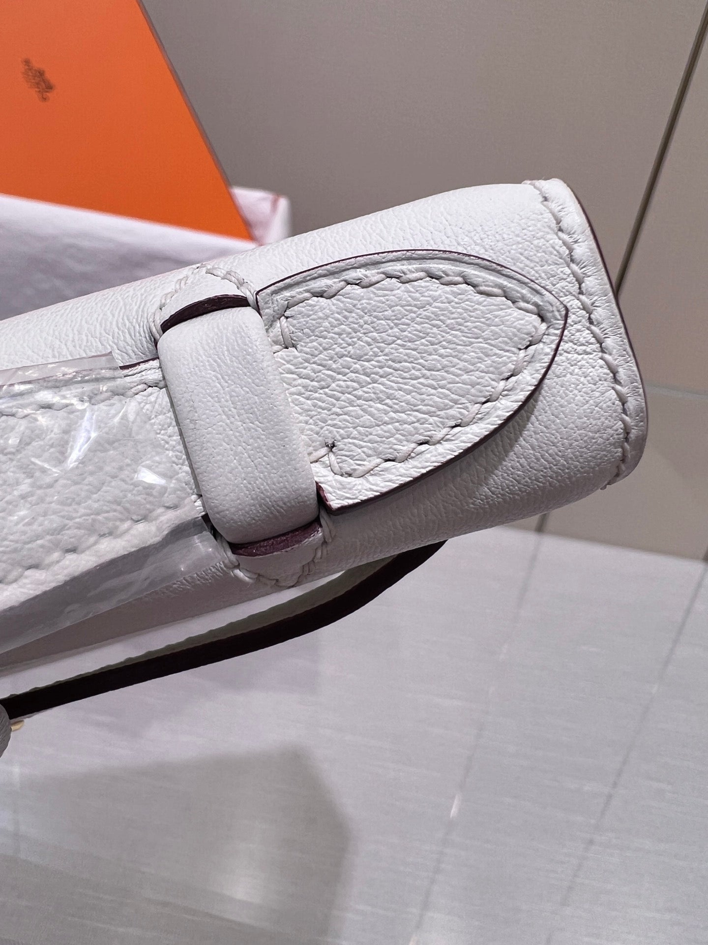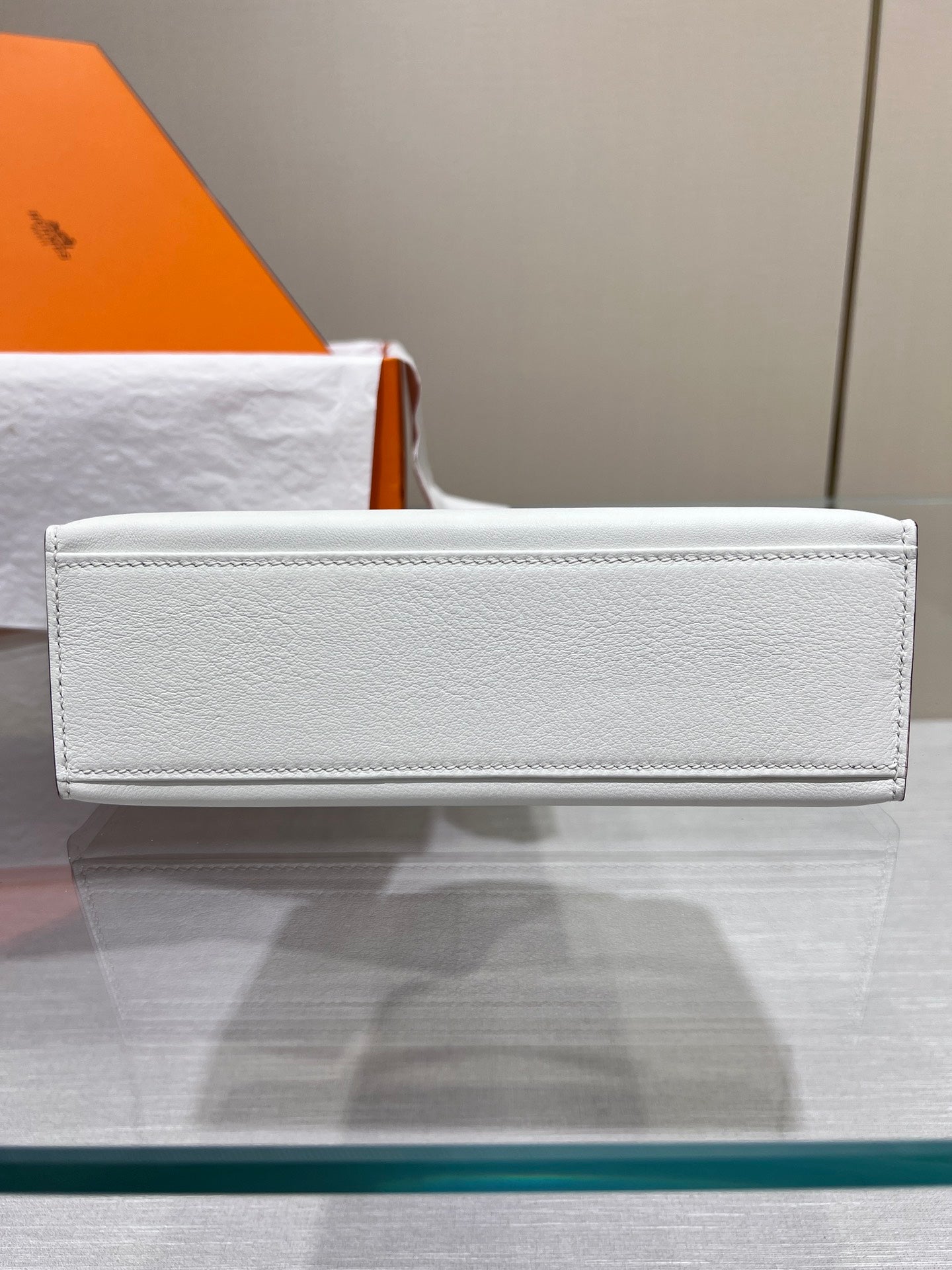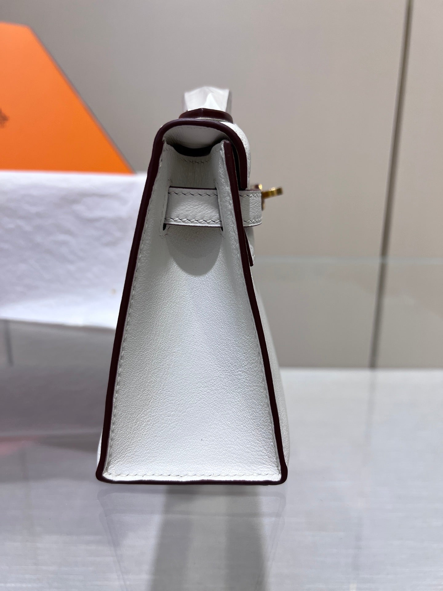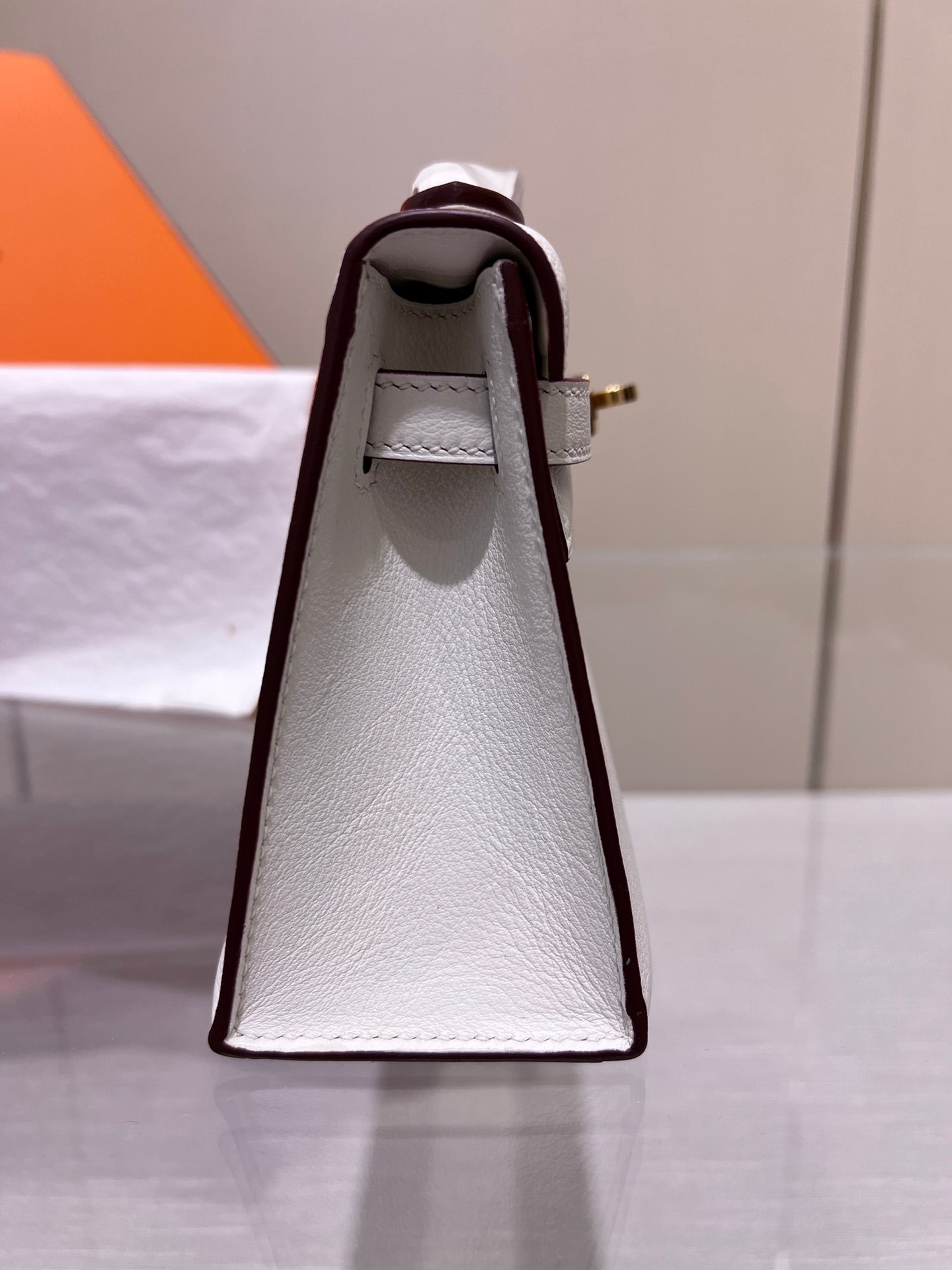 HM KELLY POCHETTE 22CM WHITE SWIFT GOLD HARDWARE