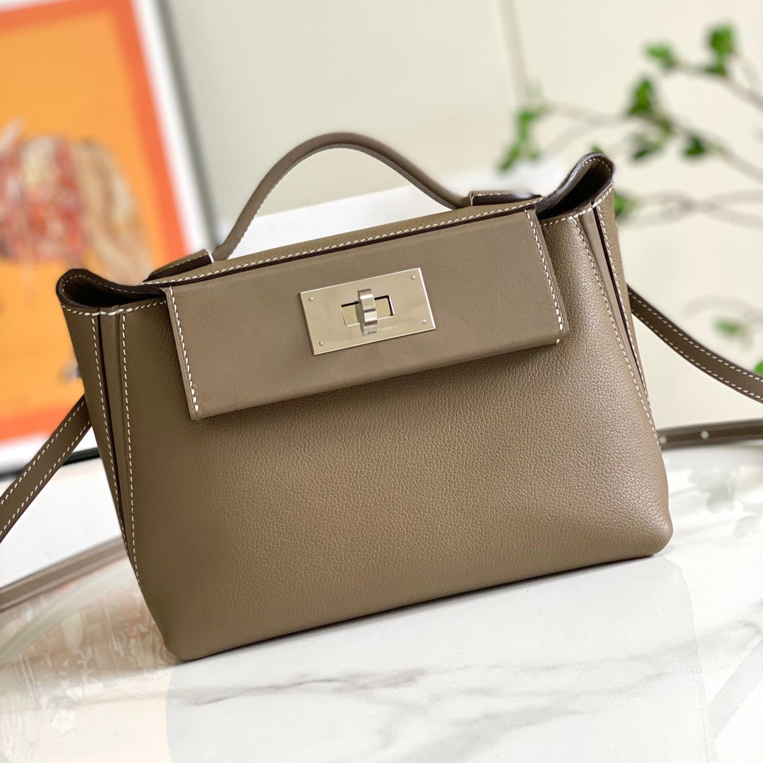 HM 24/24 Mini Bag 21cm Etoupe Evercolor Leather Silver Hardware