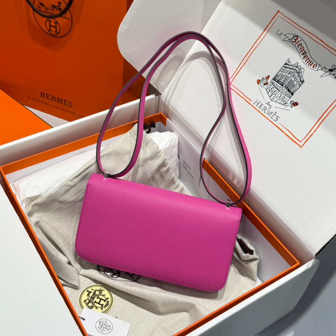 HM Constance Elan 24cm Bag Rose Tyrien Epsom Leather Silver Hardware