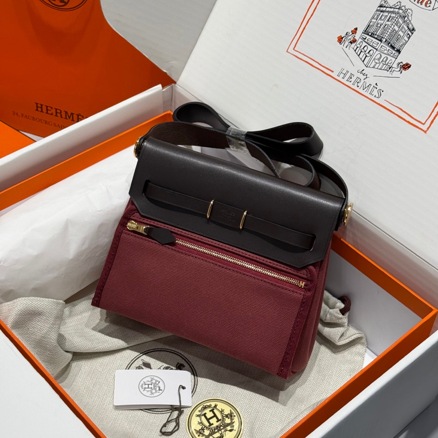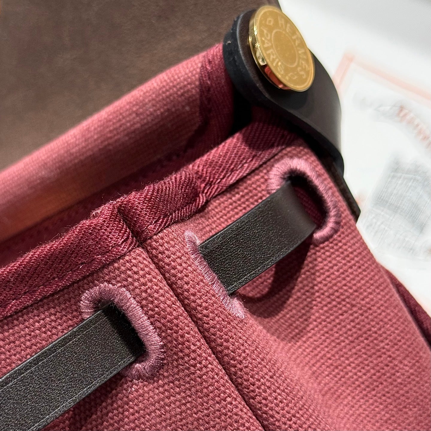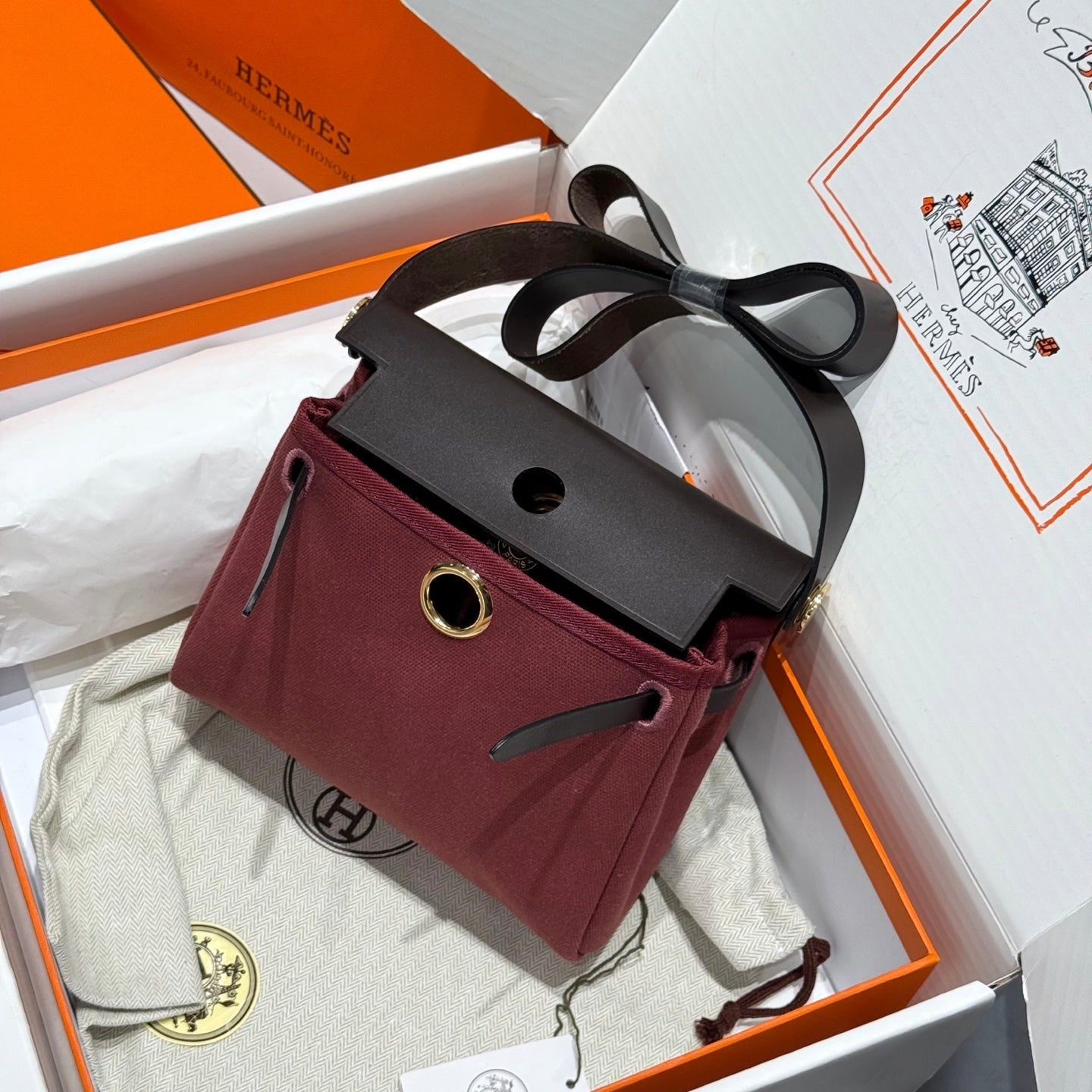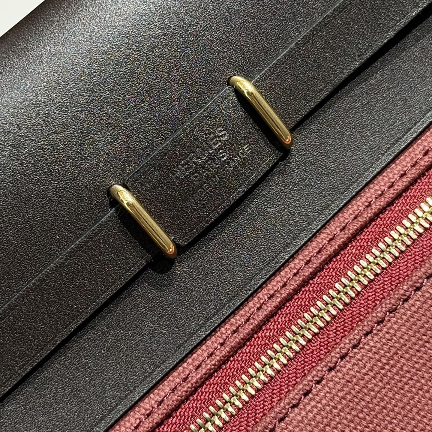 HM Mini Herbag Gold Buckle 20 Burgundy Canvas and Hunter Cowhide 243365
