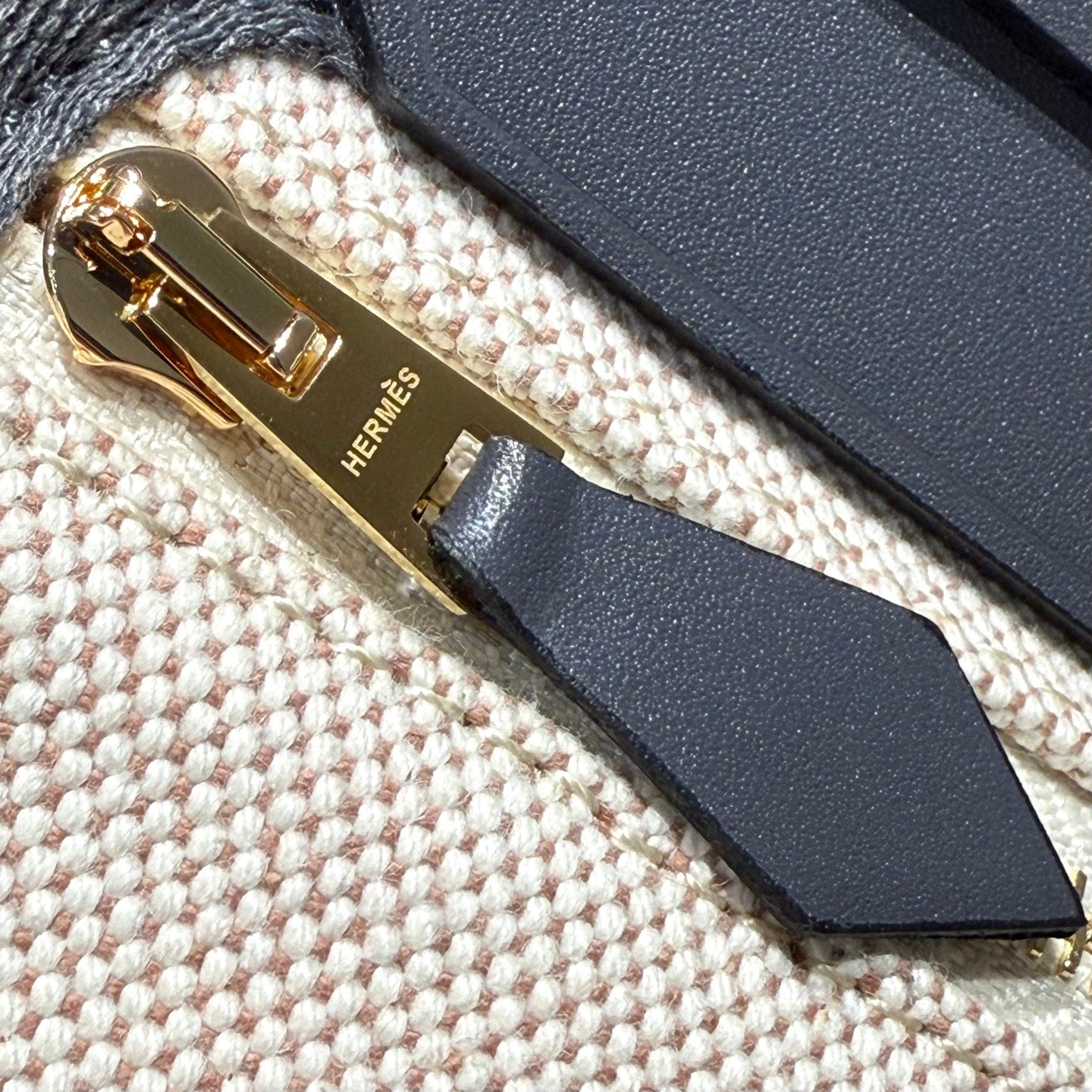 HM Mini Herbag Gold Buckle 20 Cream Canvas and Hunter Cowhide 243275