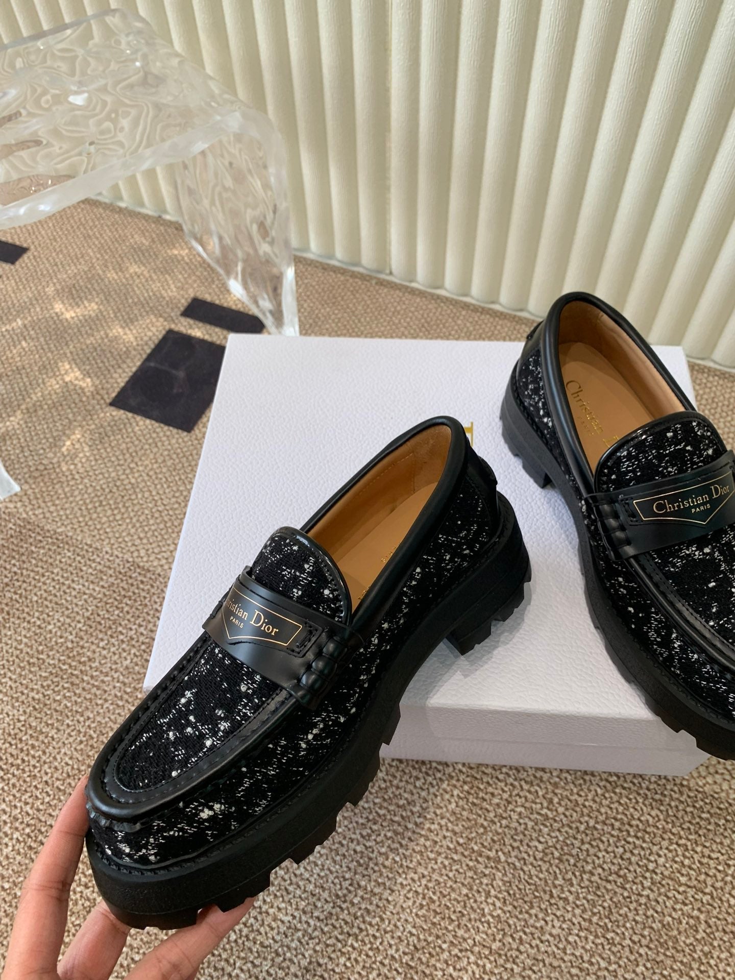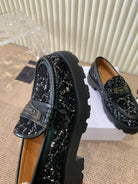 CD Boy Platform Loafer In Black Tweed Fabric And Cowhide 113487
