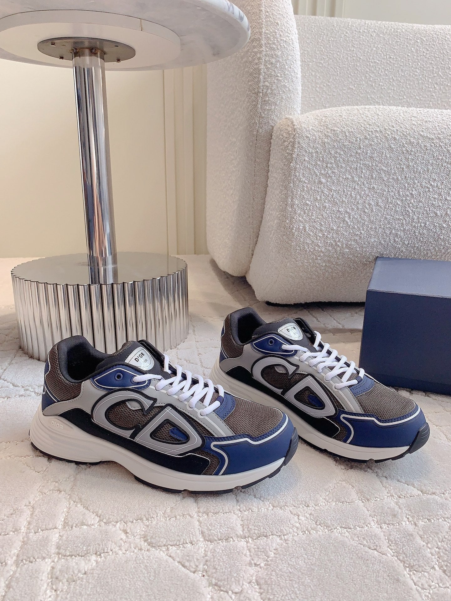 CD B30 Sneaker Brown Blue Mix Grey Polyester Mesh Fabric And Calfskin