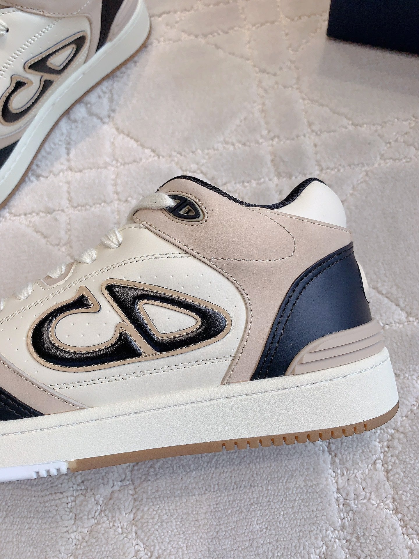 CD B57 Mid-Top Sneaker White Beige Mix Black Calfskin And Oblique Jacquard