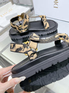 CD D-Wave Sandal In Drak Beige Black Cowhide 100765