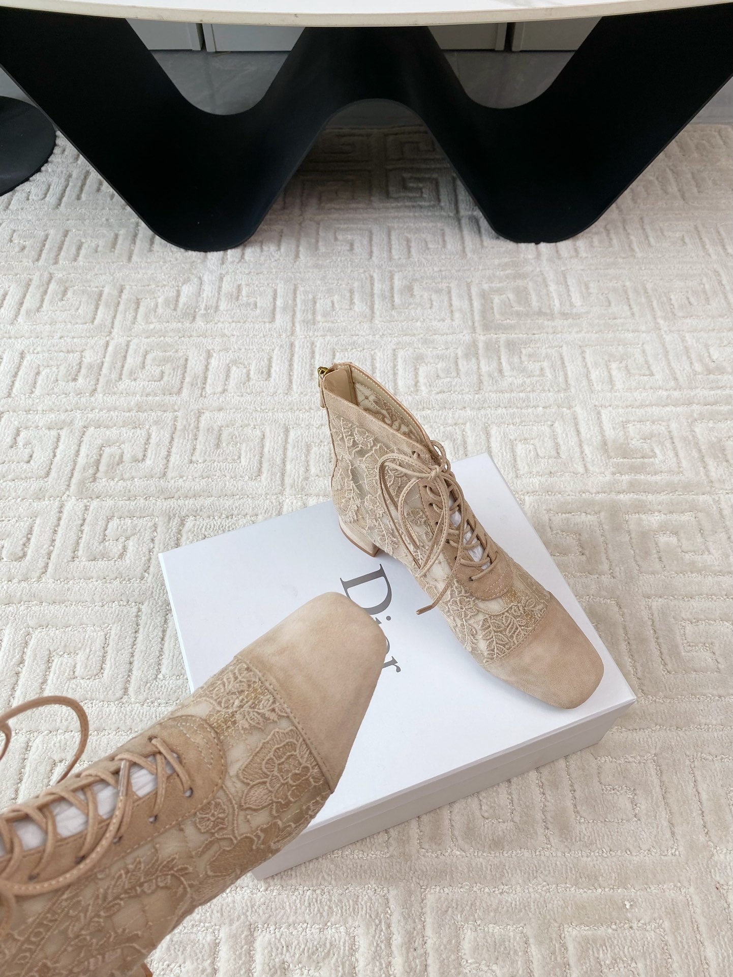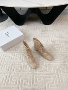 CD Naughtily-D Heeled Ankle Boot Beige Transparent Mesh Roses Embroidery And Suede