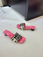 dway heeled slide 35 embroidered cotton red miss cd alllover motif