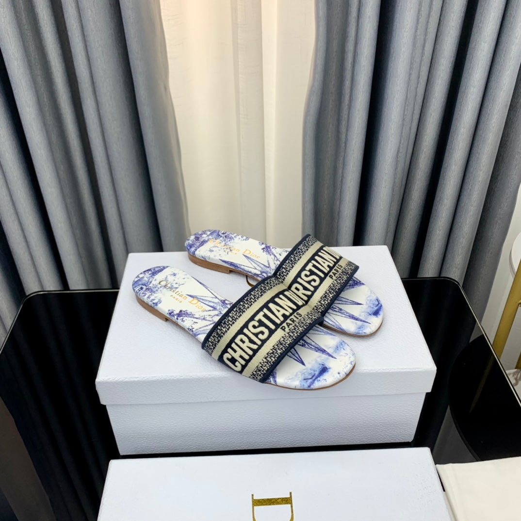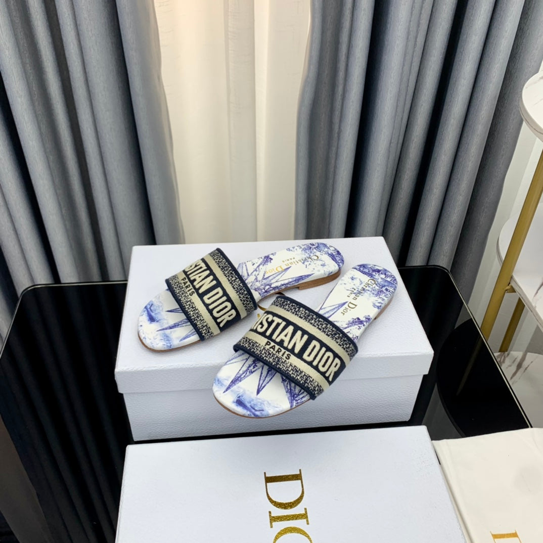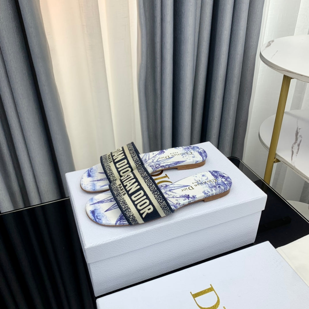 CD Dway Slide Blue White Wool Fleece Lining And Canvas Fabric