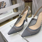 JAdior slingback pumps 95 transparent mesh grey embroidered cotton