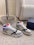 CD B27 High-Top Sneaker White Grey And Red Blue Print Calfskin