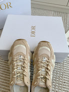 CD Chrono Sneaker In Light Brown And Ivory White Mesh Fabric And Suede 105379