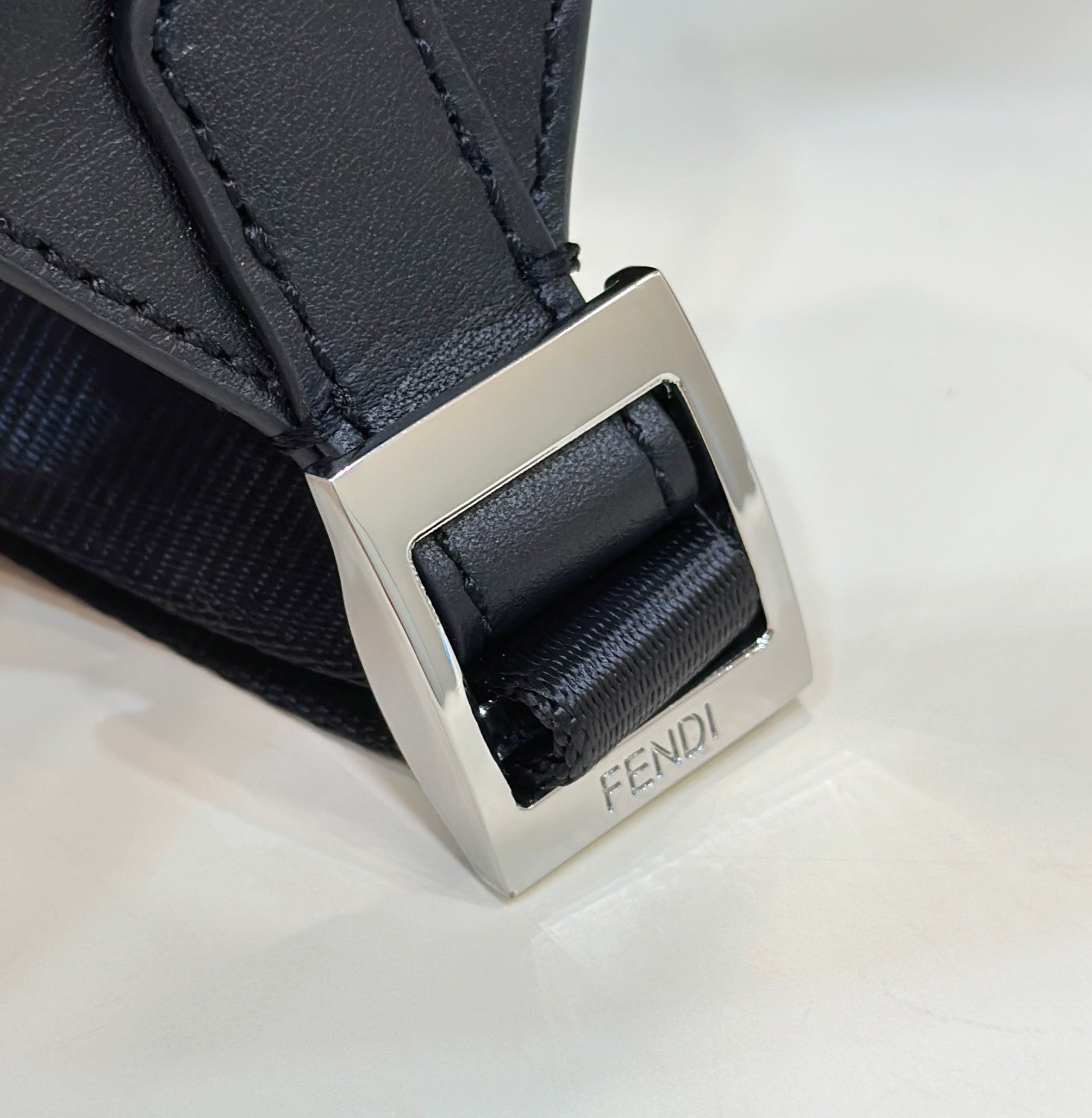 FENDI STRIKE LARGE 46 FF MIDNIGHT BLUE JACQUARD FABRIC BACKPACK