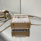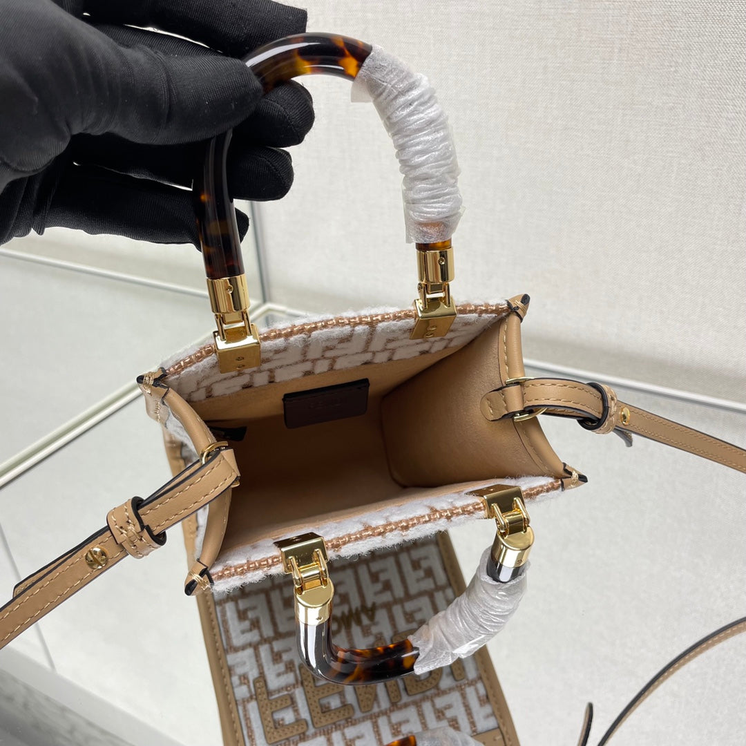 MINI SUNSHINE 18 IN WHITE WOOL AND CAMEL BROWN RAFFIA CALFSKIN TRIM