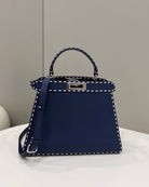 PEEKABOO ISEEU 33 IN NAVY BLUE GRAINED CALFSKIN SILVER HARDWARE