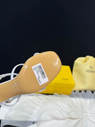 FENDI FFOLD MEDIUM-HEELED 55 MM SANDALS IN WHITE LAMBSKIN WITH GOLD HARDWARE
