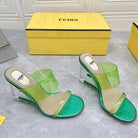 FENDI FIRST 95 MM HIGH-HEELED SANDAL IN GREEN FERN TPU FILM AND LAMBSKIN