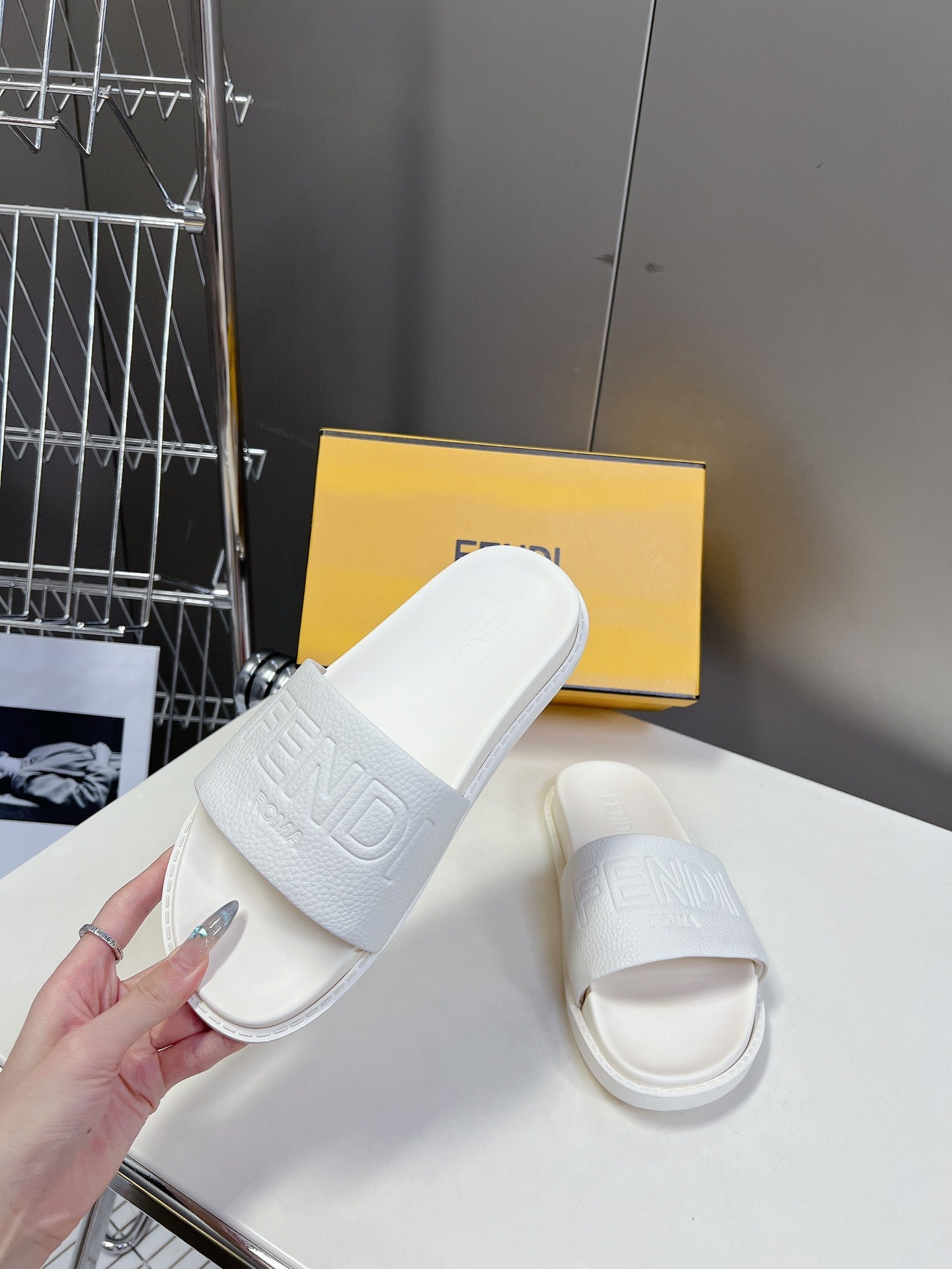 FENDI ROMA SLIDES IN WHITE LAMBSKIN LEATHER