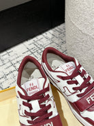 FENDI MATCH LOW-TOPS IN BURGUNDY RED MIX WHITE CALFSKIN