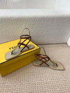 FENDI O'LOCK THONG SANDAL BROWN CALFSKIN WITH GOLD HARDWARE
