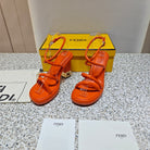 FENDI CHUNKY HIGH-HEELED SANDAL IN ORANGE RED CALFKIN WITH GOLD HARDWARE