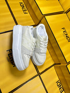 FENDI THICK-SOLDED SNEAKER IN WHITE SUEDE AND MONOGRAM FABRIC