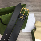 G BELT GOLD SQUARE INSTALL BUCKLE BLACK LEATHER 3.5CM