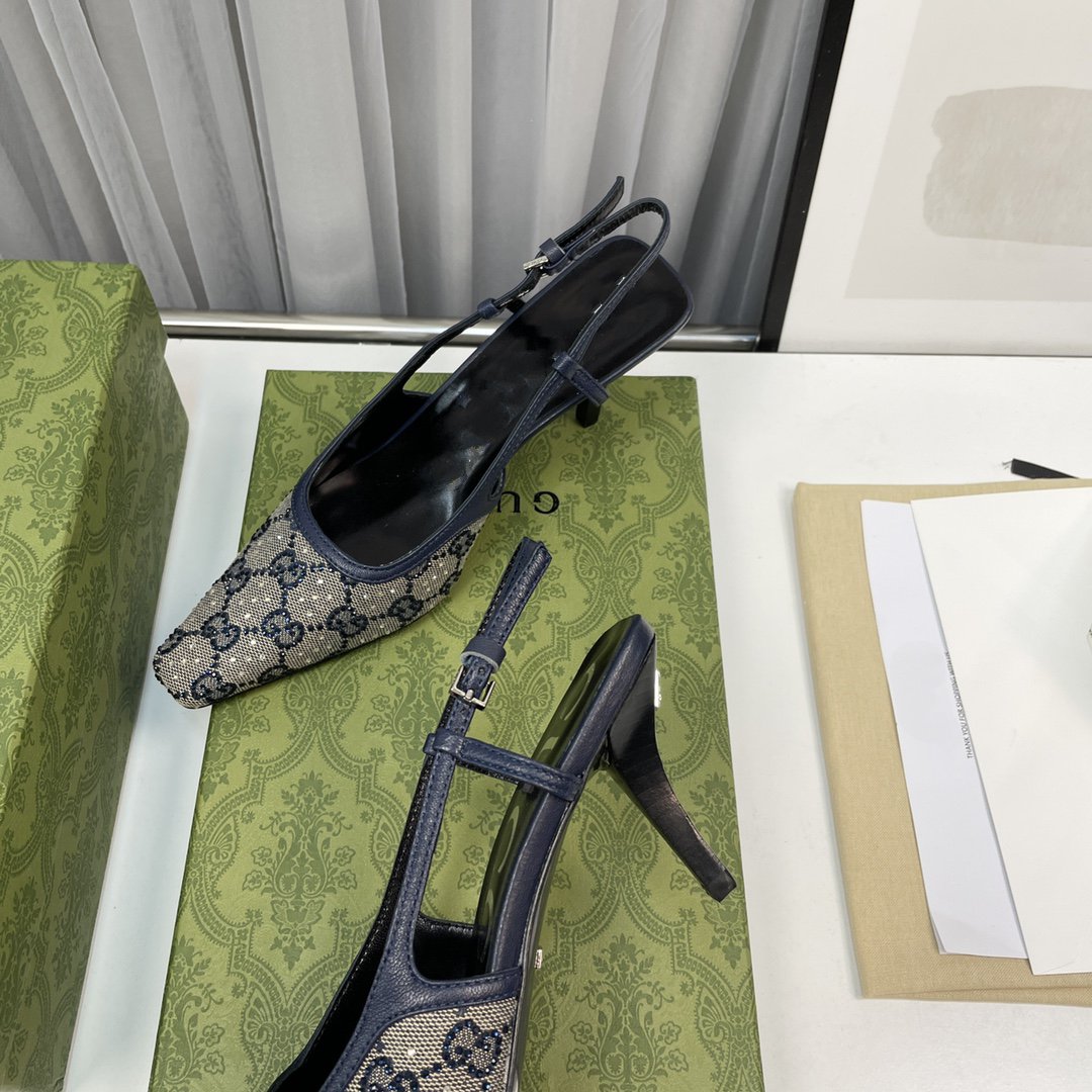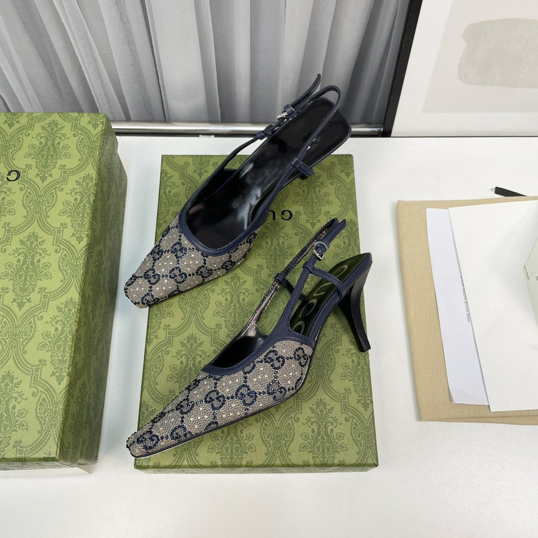GG Horsebit Slingback 85MM Beige Ebony Monogram Canvas Point Toe Crystal-Embellished