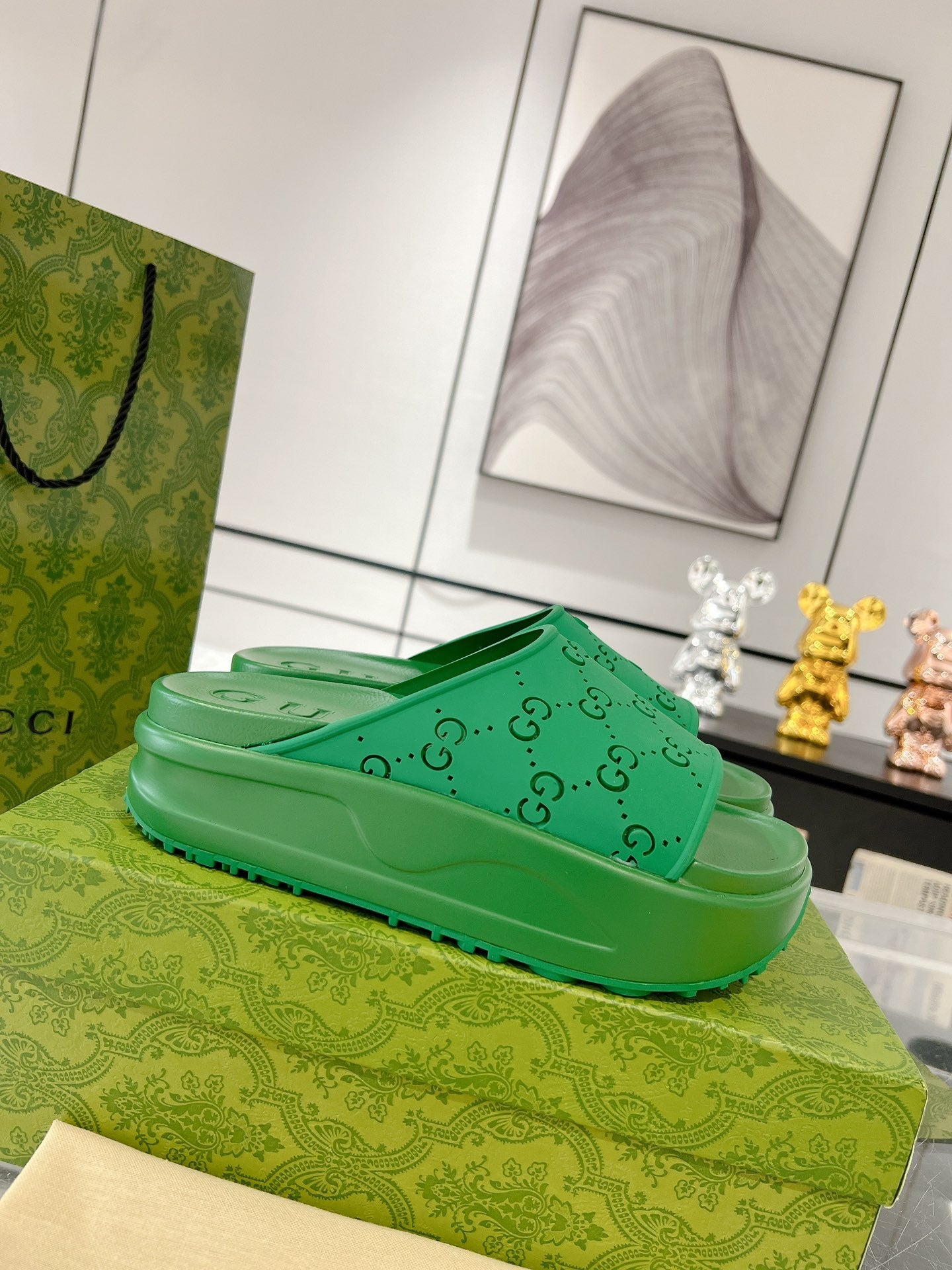 GC 25 50mm Monogram Slide Sandal Green Cowhide 292390