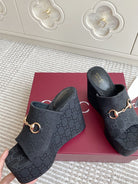 GC 25 Wedge With Horsebit Sandal Black Canvas 291030