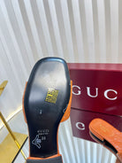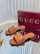 GC Double G Slide Sandals Brown Embossed Leather 294631