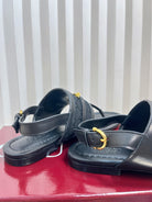 GC Horsebit Thong Sandals Black Canvas Sheepskin 294539