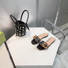 GG BAMBOO BUCKLE FLAT SANDALS BLACK