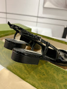 GG CRYSTALS SLINGBACK BALLET BLACK CALFSKIN