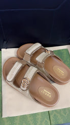 GG SANDAL WITH DOUBLE G CARAMEL CALFSKIN