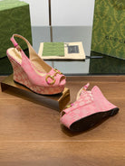 GG WEDGE PLATFORM IN LIGHT PINK MONOGRAM JACQUARD FABRIC